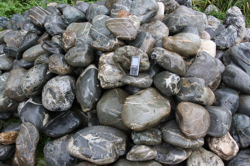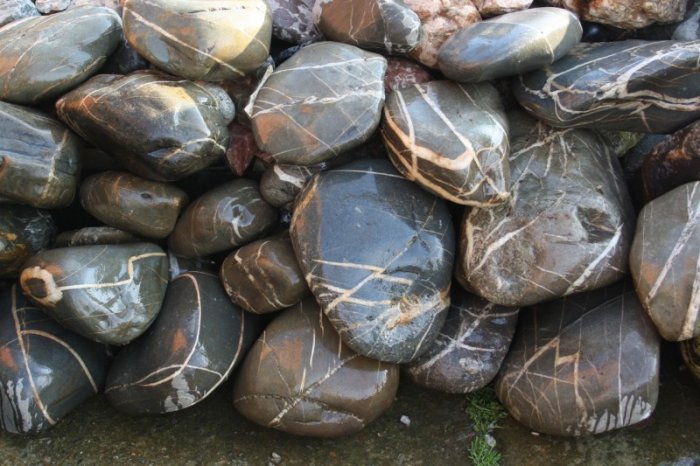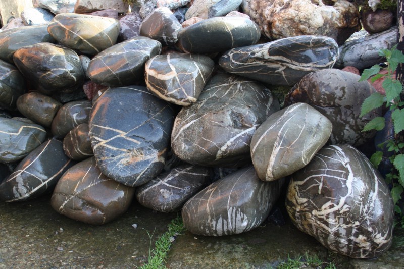 • Kamenclub.ru: Валунчик Паутинник фр.100-300 мм  купить в Санкт-Петербурге крупный природный камень галечник темно-серый с прожилками белый черный речной валунчик 5000 руб/т   фото КАМЕНЬ КЛУБ